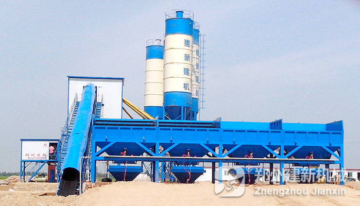 建新所自主研发生产的HZS150混凝土搅拌站主要由砂石配料系统、物料输送系统、计量系统、搅拌装置、供水系统、附 加剂供给系统、气路系统及电控系统等部分组成,其工艺流程为:水泥筒仓内的水泥、粉煤灰通过螺旋输送机进入相应称量斗中,砂石料斗中的砂、石通过其仓底的 弧形门投放到其下的称量斗内进行称量,并通过水平皮带机、斜皮带机输入到砂、石贮料斗内;水、附加剂则通过电泵送入到各自的称量斗中,配料完毕,进入搅拌 机搅拌,搅拌后的混凝土通过混凝土集料斗直接卸入混凝土输送车中,可配备加热系统,实现0°至-40°正常施工。